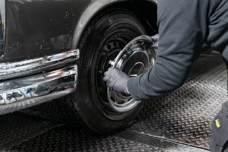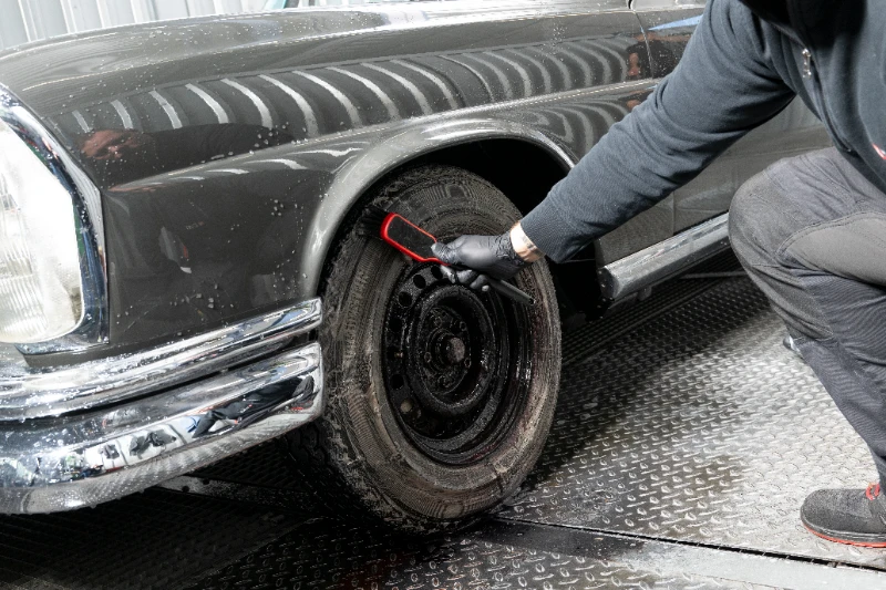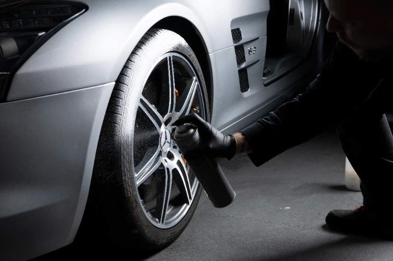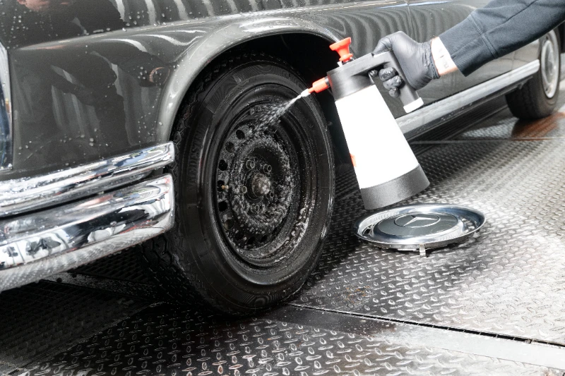Felgen prägen den Charakter eines Autos – sie verdienen dieselbe Sorgfalt wie der Lack. Bei EVO werden sie vor der Reinigung abgekühlt und anschließend mit säurefreien Spezialreinigern behandelt. Bremsstaub, Teer und Metallrückstände werden mit Bürsten, Pinseln und Dampfstrahltechnik entfernt, ohne die Beschichtung zu beschädigen. Der Reinigungsvorgang erfolgt mehrstufig, um auch schwer zugängliche Bereiche wie Speichen und Ventilsitze rückstandsfrei zu säubern.