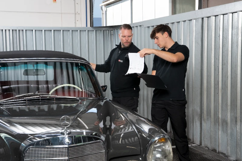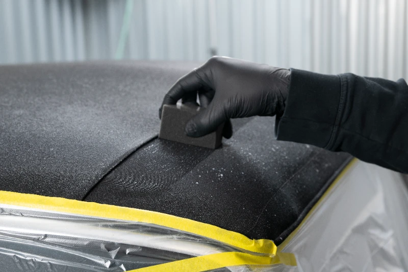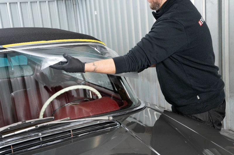 Ein Stoffverdeck ist ständig Witterung, UV-Licht und Schmutz ausgesetzt – bei EVO erhält es die Pflege, die es verdient. Zunächst wird das Verdeck gründlich gereinigt: lose Partikel werden abgesaugt, Flecken mit Spezialreiniger und Bürste bearbeitet, Algen und Rückstände schonend gelöst. Danach folgt die Trocknung bei Raumtemperatur, bevor das Imprägniermittel in mehreren dünnen Schichten aufgetragen wird. Diese Behandlung dringt tief in die Faserstruktur ein und schafft eine wasser- und schmutzabweisende Schutzbarriere, ohne die Atmungsaktivität des Stoffes zu beeinträchtigen. Regen perlt ab, Farben bleiben satt und UV-beständig. Zusätzlich erhält das Material eine angenehme Geschmeidigkeit, die Sprödigkeit verhindert  Ob klassisches Cabrio oder modernes Stoffdach – die EVO-Imprägnierung verlängert die Lebensdauer und erhält den eleganten Look Ihres Fahrzeugs, selbst nach intensiver Nutzung und Sonneneinstrahlung.